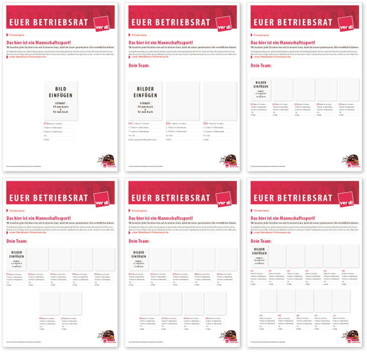ver.di Betriebsratsplakate Plakate zur eigenständigen Individualisierung im Acrobat. Die Erklärung zur Umsetzung findet ihr im Ordner. Die fertigen Plakate sind in A4, A3 und A2 druckbar. verdi_Betriebsratsplakate.zip Archivdatei im ZIP Format [10.1 MB]