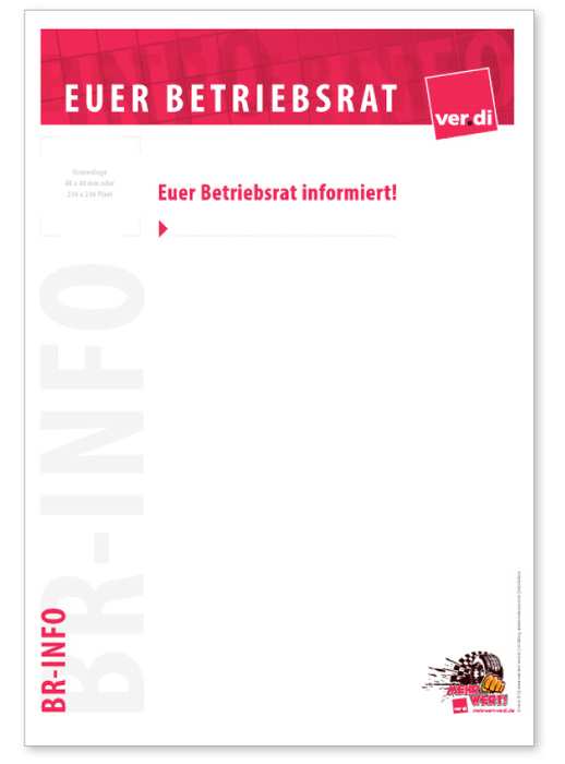 A4-Betriebsratsplakat für individuelle Informationen Dieses Plakat könnt ihr mit euren Informationen individuell beschreiben. Info-Plakat.zip Archivdatei im ZIP Format [10.1 MB]
